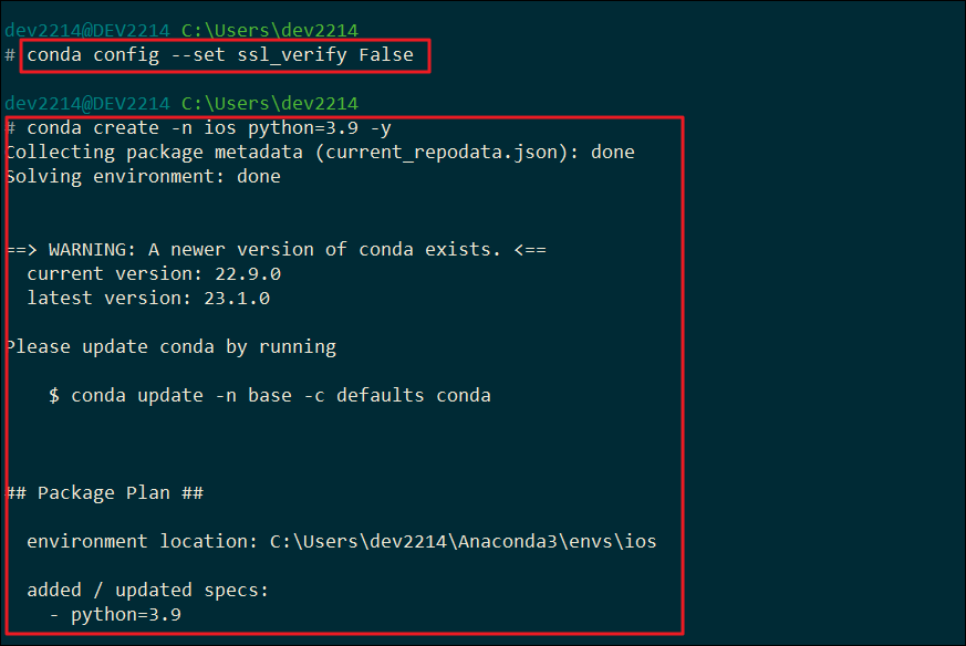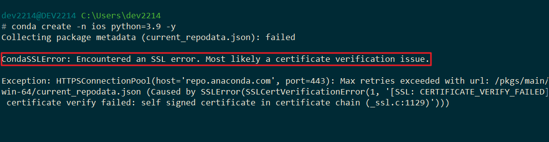 환경 생성 시 다음과 같은 에러가 나는 경우는