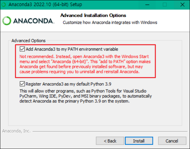 (아나콘다 패키지에 파이썬이 포함되어 있어 함께 설치되는 경우 환경변수 꼬임)