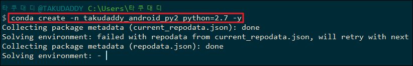 c:> conda create -n takudaddy_android_py2 python=2.7 -y
