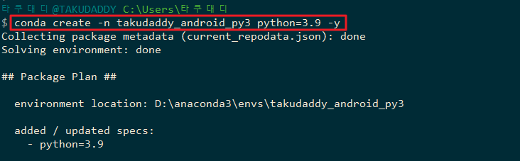 c:> conda create -n takudaddy_android_py3 python=3.9 -y