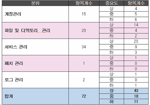 ■ UNIX 서버 취약점 분석/평가 항목 : 총 72개 항목