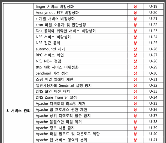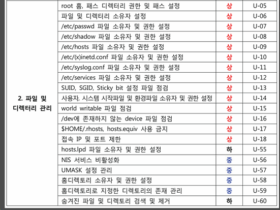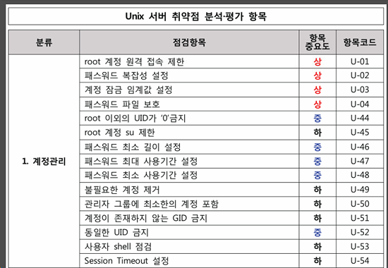 UNIX 서버 취약점 분석/평가 항목