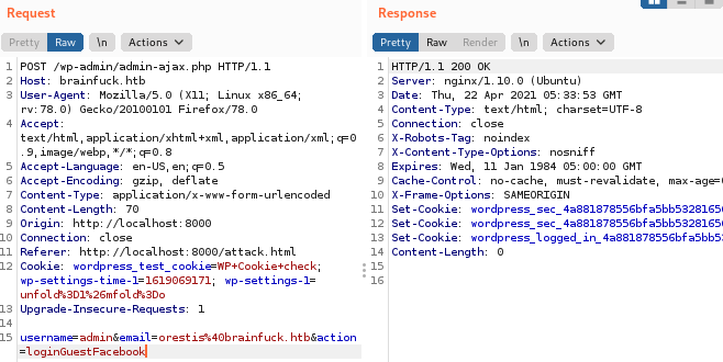 | Location: https://brainfuck.htb/wp-content/plugins/wp-support-plus-responsive-ticket-system/