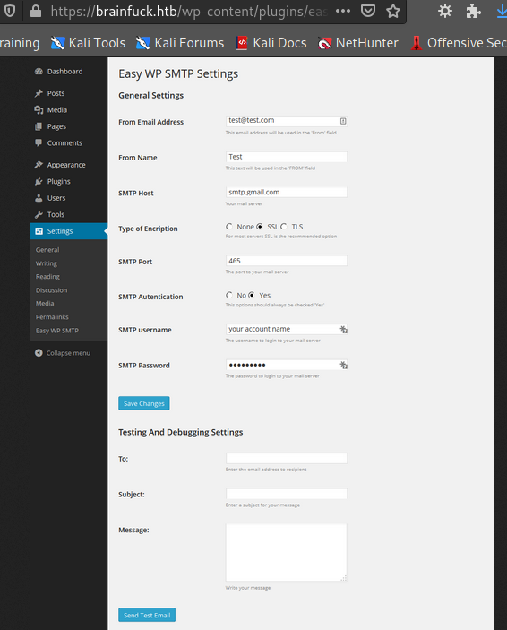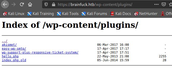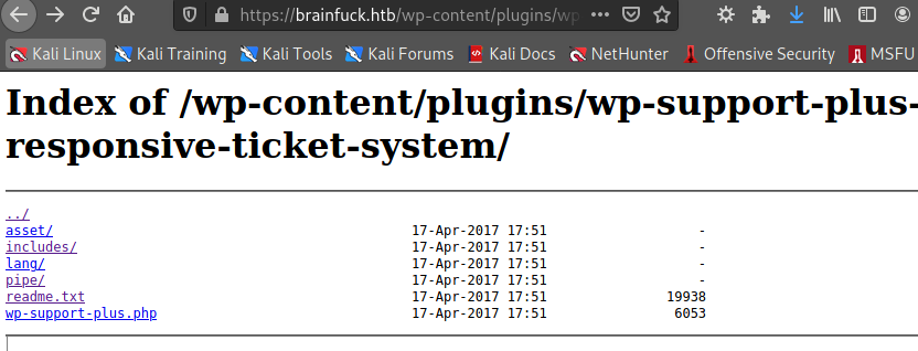 | - https://brainfuck.htb/wp-content/plugins/wp-support-plus-responsive-ticket-system/readme.txt