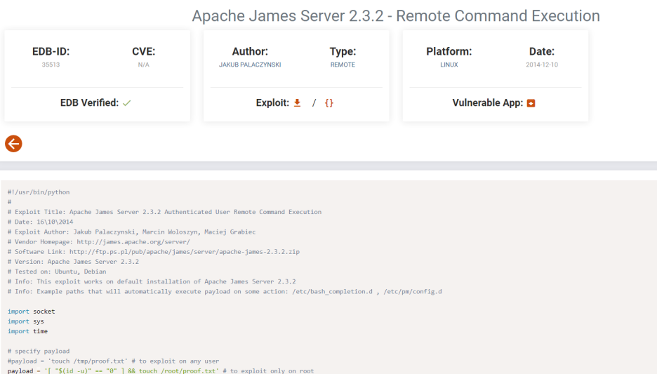 25/tcp open smtp JAMES smtpd 2.3.2
