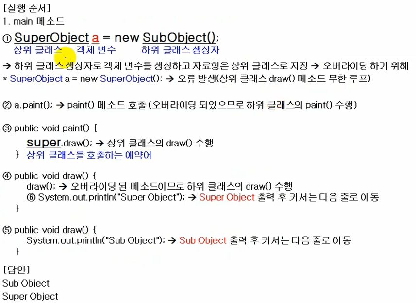 super를 붙여 메서드를 호출하는 경우(super.draw();)는 상위 클래스의 메서드,