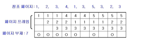 : 가장 먼저 들여온 페이지를 먼저 교체시키는 방법 (주기억장치 내에 가장 오래 있었던 페이지를 교체)