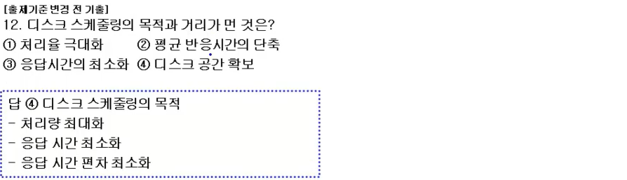 디스크 스케줄링은 처리량, 시간적인 부분과 관계가 있지 공간, 용량등과는 관계없음