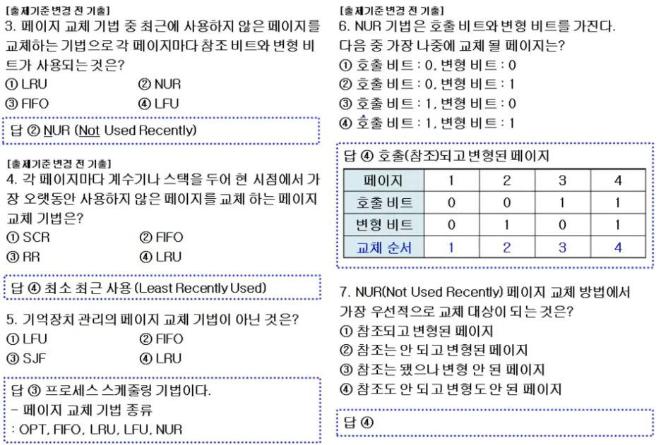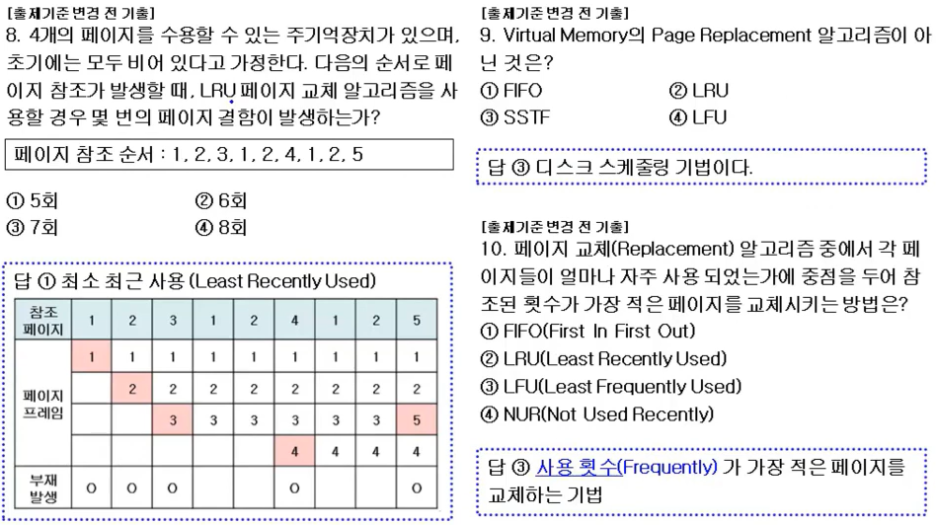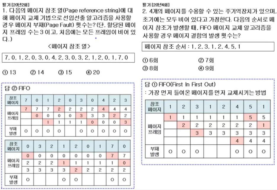 : OPT (OPTimal replacement, 최적교체), FIFO (First In First Out), LRU (Least Recently Used),