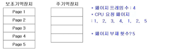 : 페이제 부재(page fault)가 발생하였을 경우, 가상기억장치(보조기억장치)의 필요한 페이지를