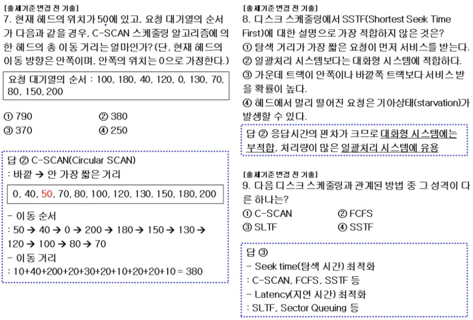 : FCFS, SSTF, SCAN, C-SCAN 기법 등