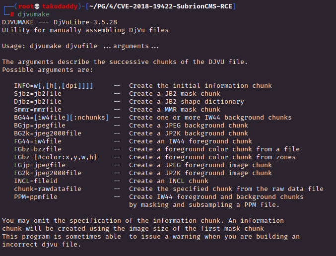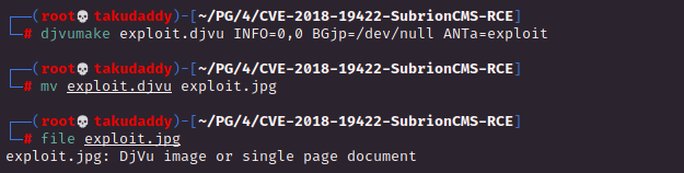 # djvumake exploit.djvu INFO=0,0 BGjp=/dev/null ANTa=exploit