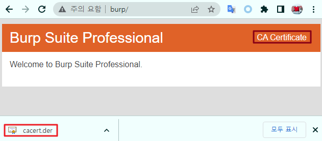 브라우저에서 http://burp 직접 호출 후 내려받던지 택일