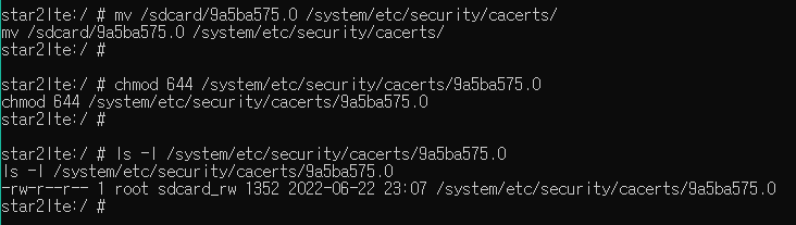 adb로 해당 인증서를 /sdcard/ 디렉터리에 푸시 해주고