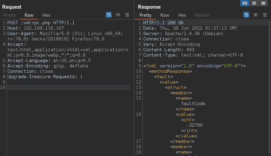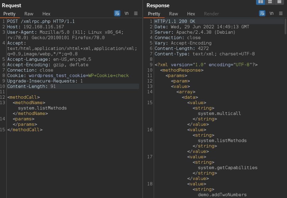 xmlrpc를 통해 공격이 이루어진다.