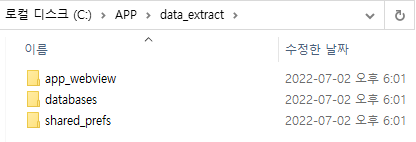 앱 내 데이터가 정상 추출된 것을 확인할 수 있는데