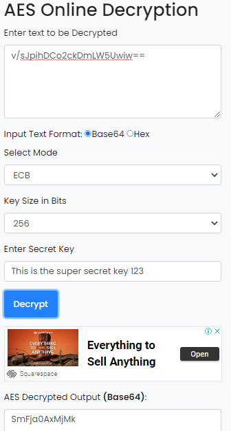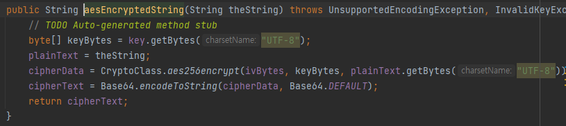 aesEncrypt 방식으로 암호화가 진행되었는데