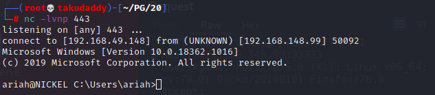 # scp ariah@192.168.120.209:C:\\users\\ariah\\desktop\\payload.exe /root/PG/20