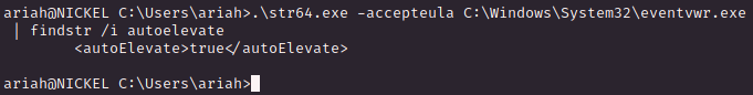 str64.exe -accepteula C:\Windows\System32\eventvwr.exe | findstr /i autoelevate