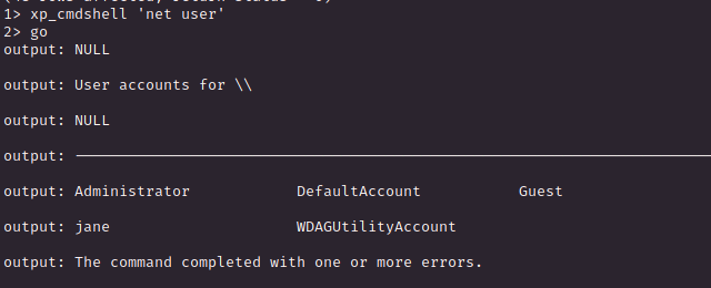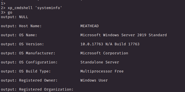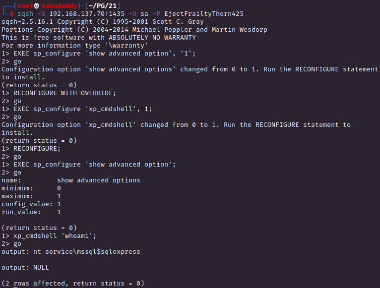 1> EXEC sp_configure 'xp_cmdshell', 1;