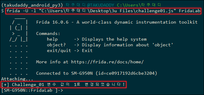 console.log("[+] Challenge_01 변수 값이 1로 변경되었습니다!");