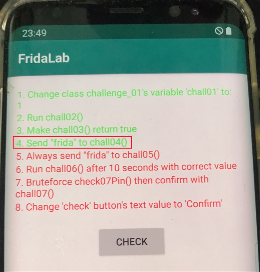 4. Send "frida" to chall04()