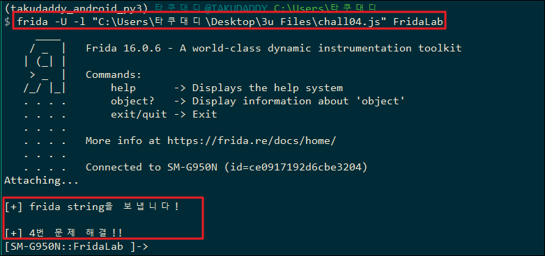 > chall04() 메서드에 frida 문자열 전송하기