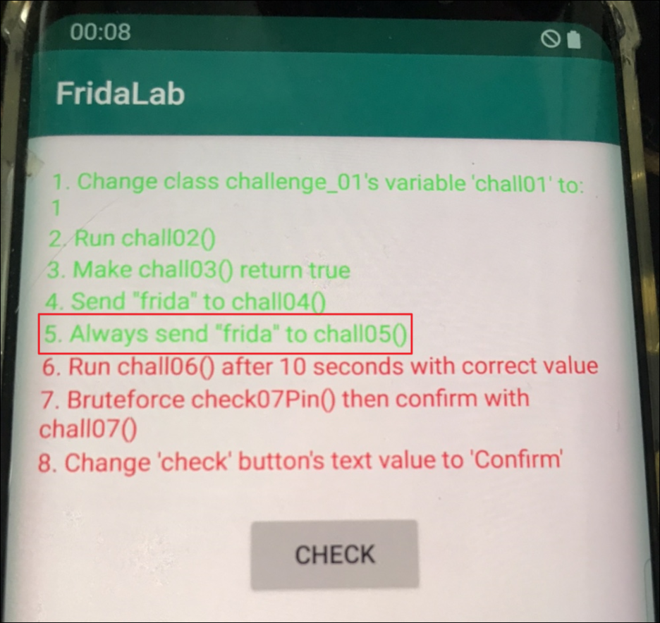5. Always send "frida" to chall05()