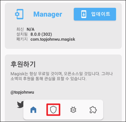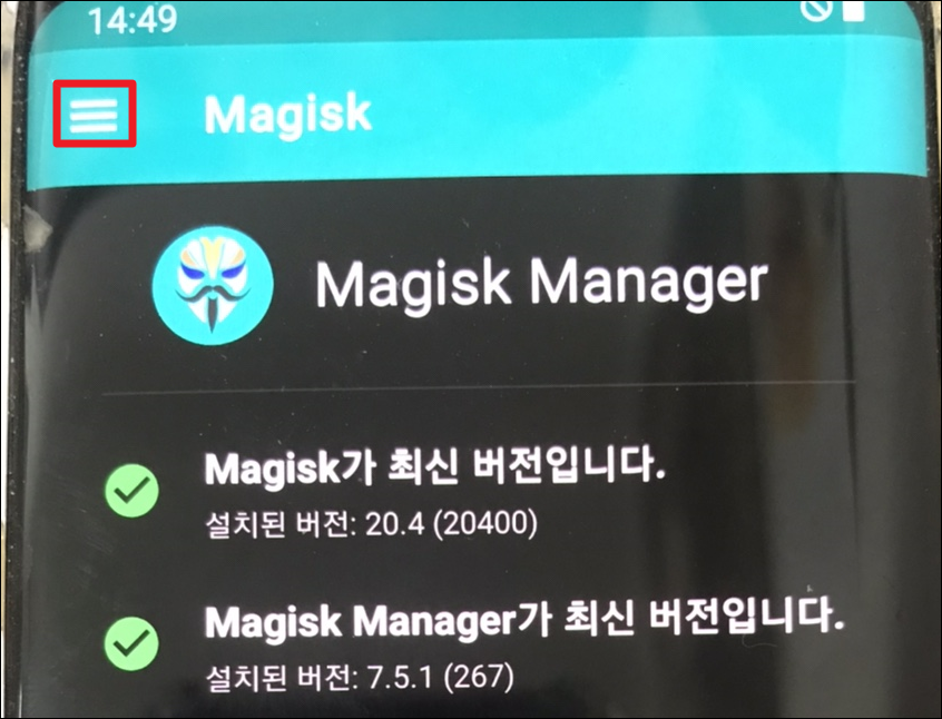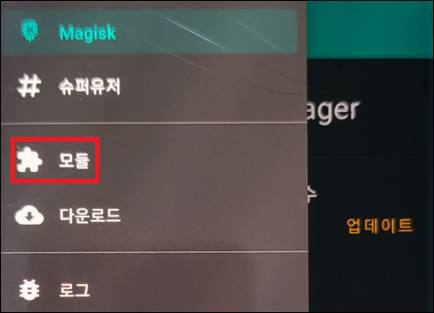 Magisk Manger 상단 왼쪽 햄버거 눌러준 뒤