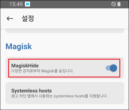 (1) 설정에서 MagiskHide 활성화