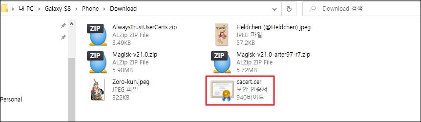 DER 포맷을 cer로 바꿔 저장해 준 뒤